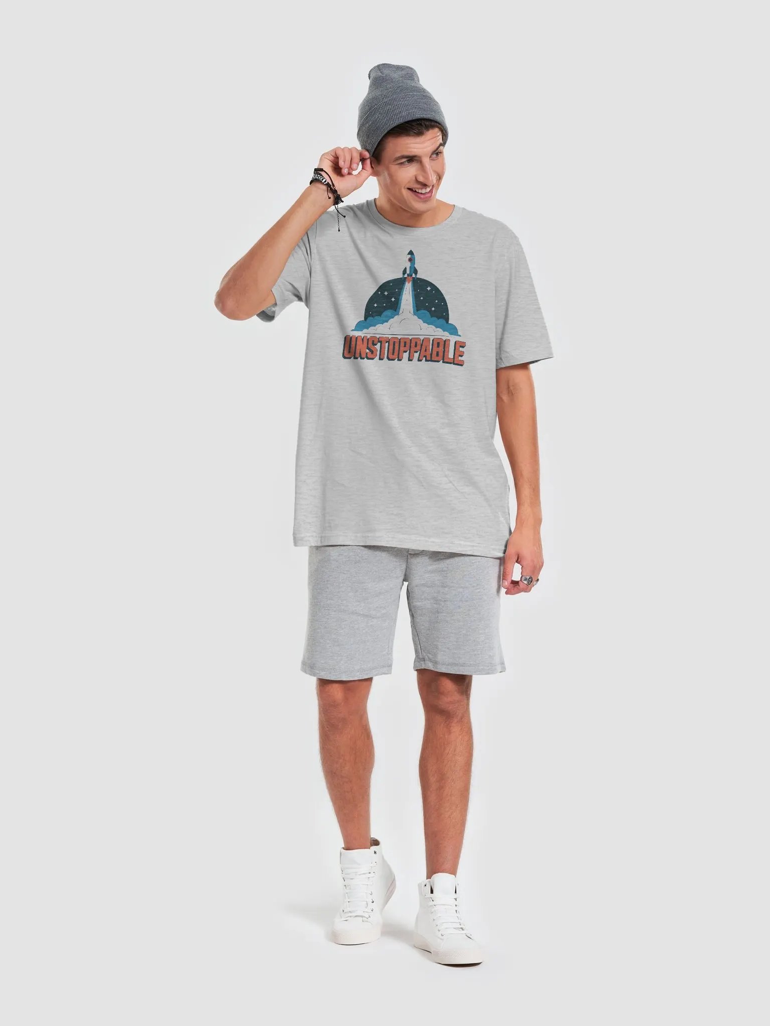Elevate your wardrobe with this dynamic t-shirt featuring the "UNSTOPPABLE" rocket design! Perfect for those who aim high and dream big, this shirt’s motivational message is underscored by the powerful image of a rocket soaring into the starry sky. Show off your unstoppable spirit and inspire others to reach for the stars in this comfortable and stylish tee.