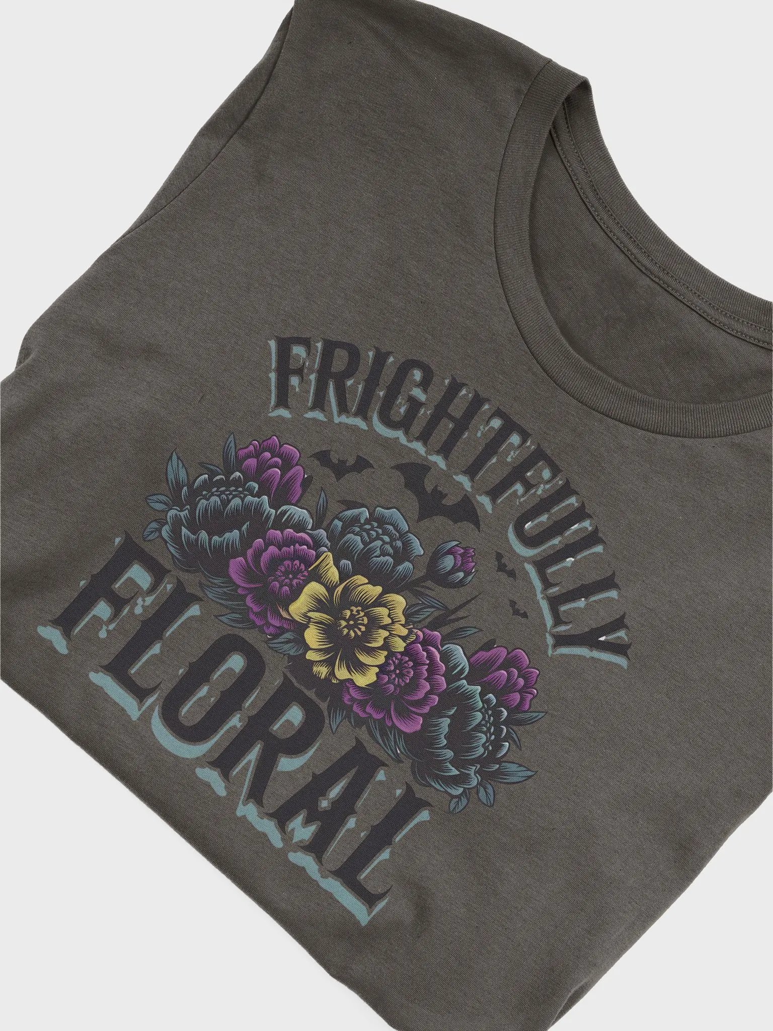 "FRIGHTFULLY FLORAL" t-shirt, Halloween floral shirt, Spooky bats and flowers shirt, Year-round Halloween apparel, Floral Halloween t-shirt, Unique Halloween clothing, Gothic floral design tee