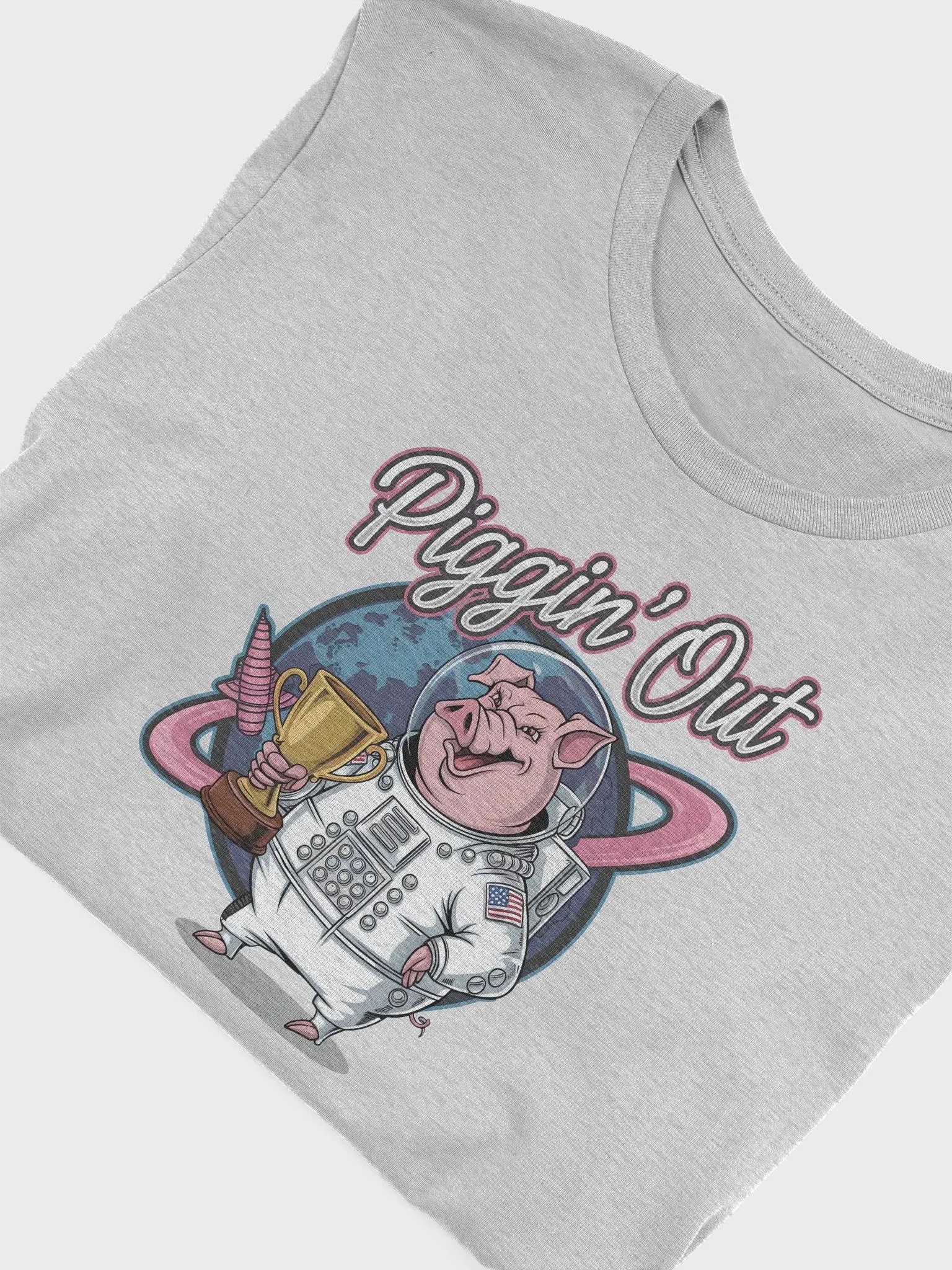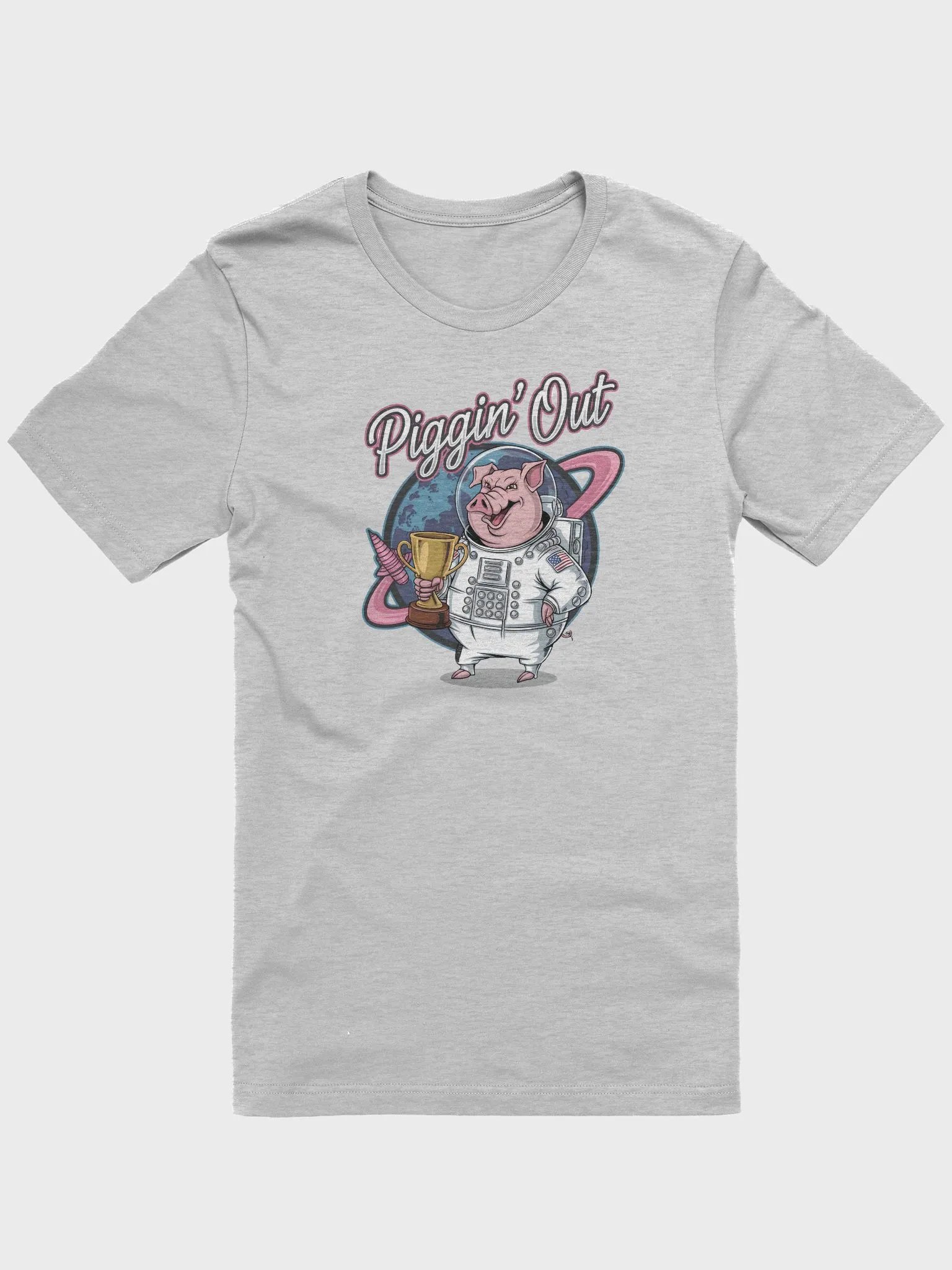 Get ready to conquer your day with our "Piggin’ Out" t-shirt! This playful design showcases a triumphant astronaut pig holding a trophy and enjoying some ice cream right on your chest. It’s perfect for anyone who loves to celebrate their victories with a touch of humor.