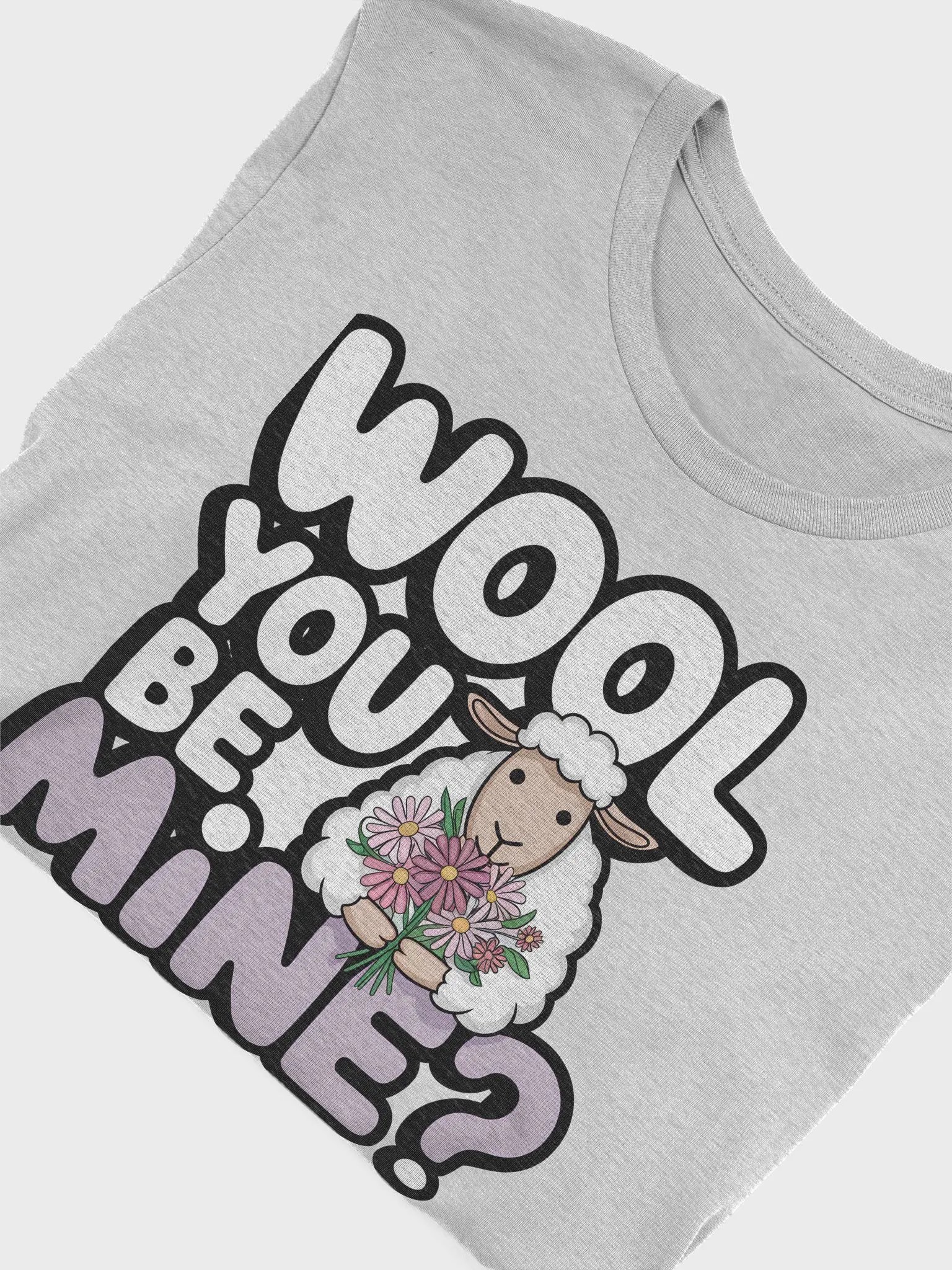 Embrace your playful side with this charming t-shirt featuring an adorable sheep asking "WOOL YOU BE MINE?" in bold letters. Perfect for those who love a good pun and want to spread cheer and motivation wherever they go.