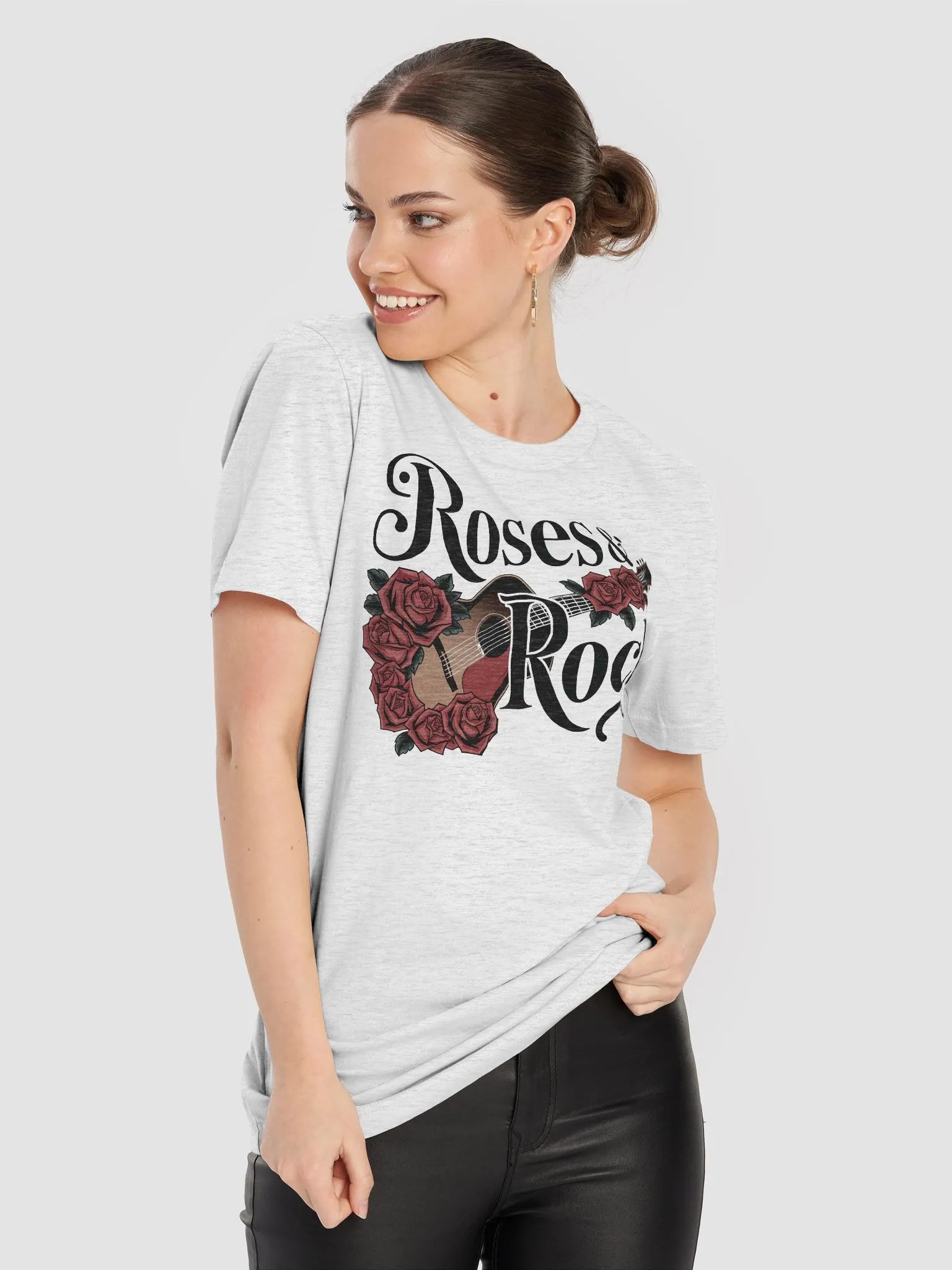 Strike a chord with your style in this "Roses & Rock" tee. Perfect for music lovers and free spirits alike, this shirt features an artful blend of delicate roses entwined around a classic guitar, symbolizing the harmony between nature’s beauty and the raw power of rock.