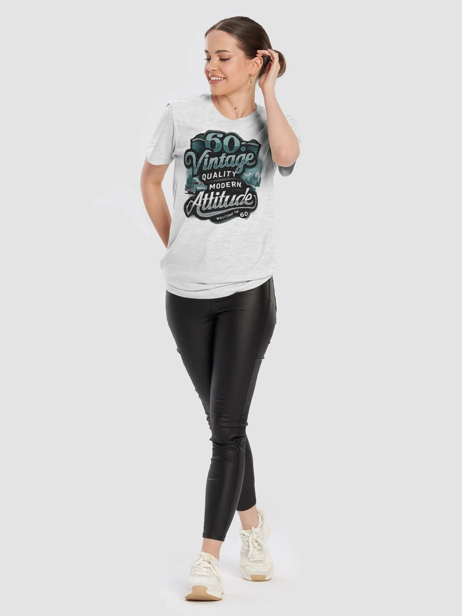 Embrace your six decades in style with this exclusive t-shirt featuring the bold statement "60: Vintage Quality, Modern Attitude". Celebrate your milestone birthday with this unique blend of retro charm and contemporary flair, complete with an iconic car illustration and majestic mountain backdrop. Perfect for anyone who’s 60 and proud!