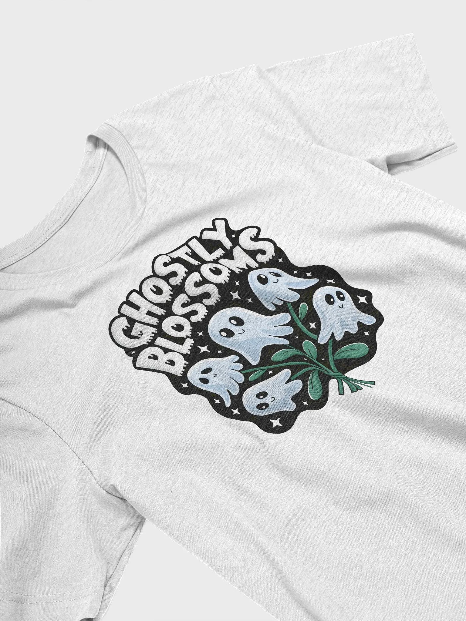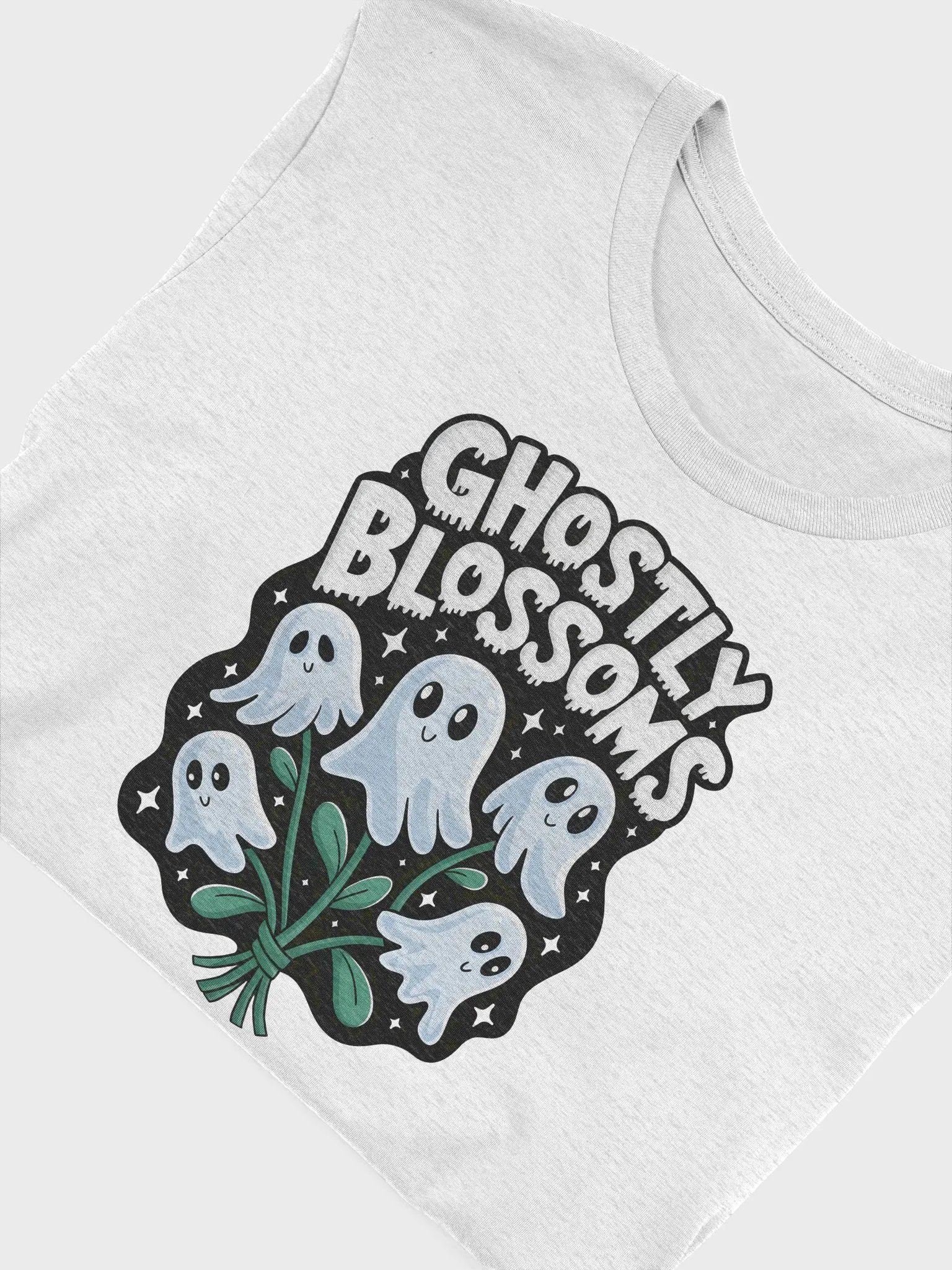 "Ghostly Blossoms" t-shirt, Halloween ghost shirt, Spooky floral t-shirt, Ghost bouquet design, Halloween humor shirt, Ghosts and flowers design, Funny horror shirt, Cheerful ghost t-shirt, gift idea