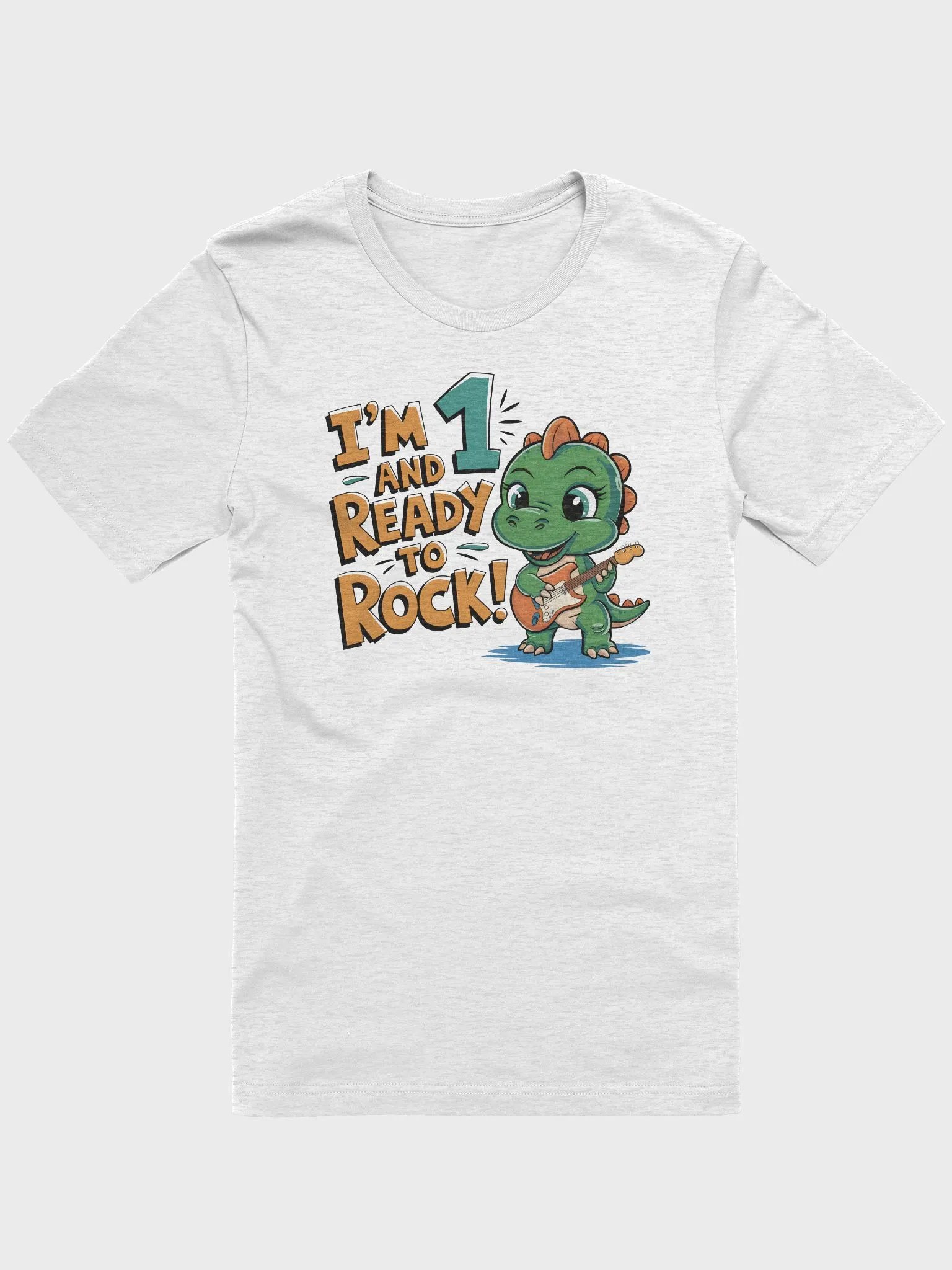 Celebrate your little one’s first birthday in style with this adorable t-shirt featuring a cheerful dinosaur rocking out on a guitar. The bold, playful text "I’m 1 and ready to rock!" adds a fun and motivational touch, perfect for any birthday celebration.