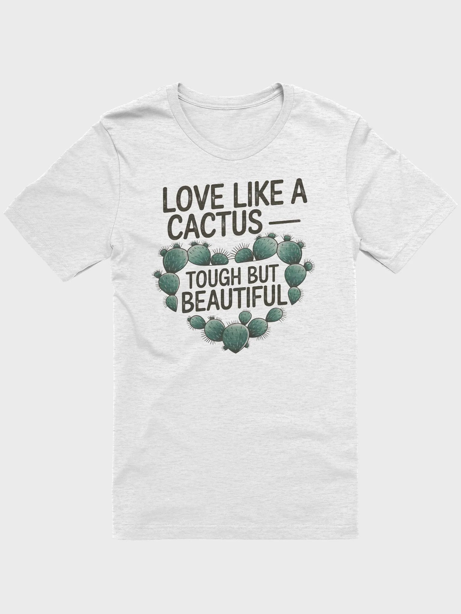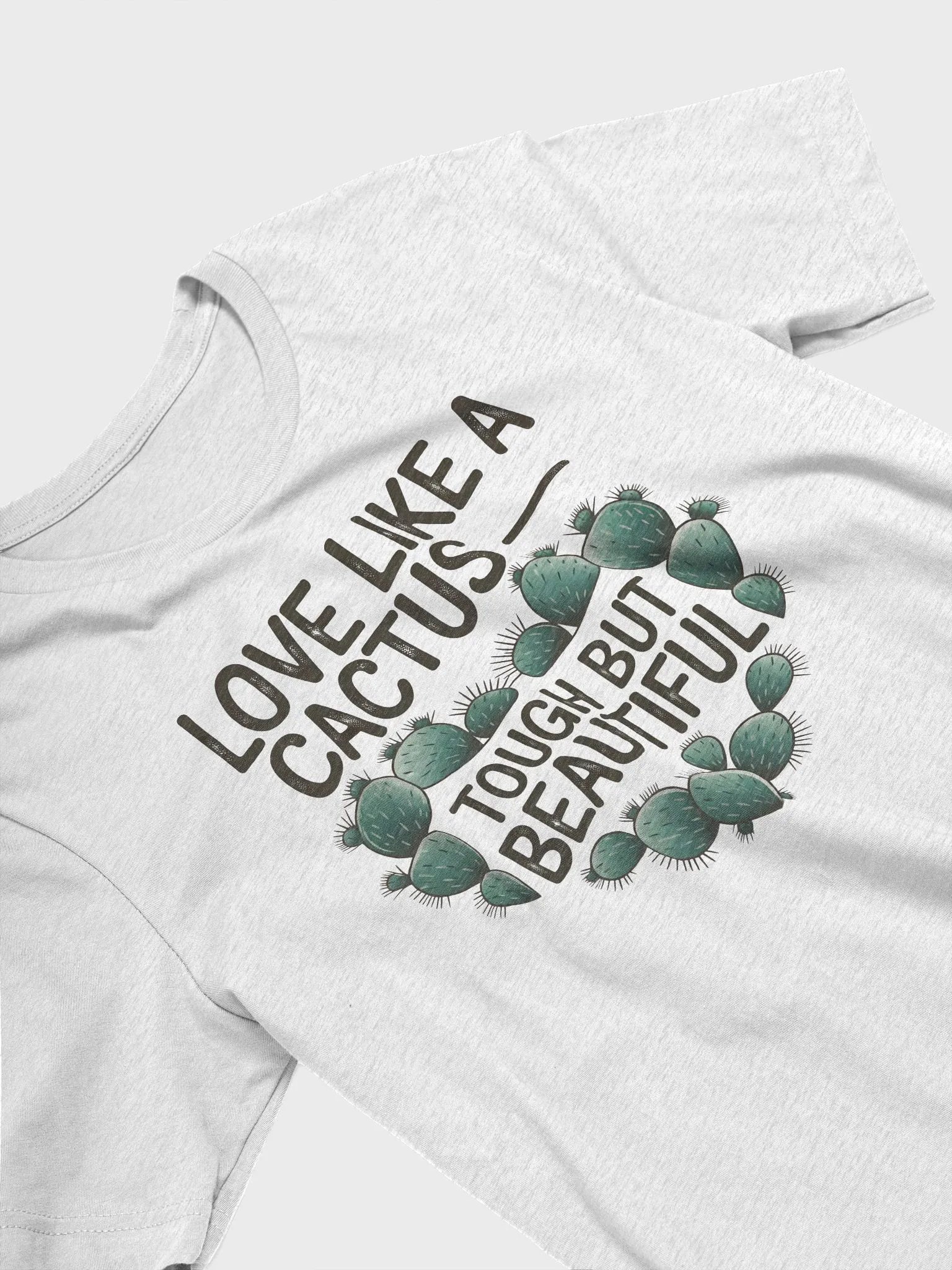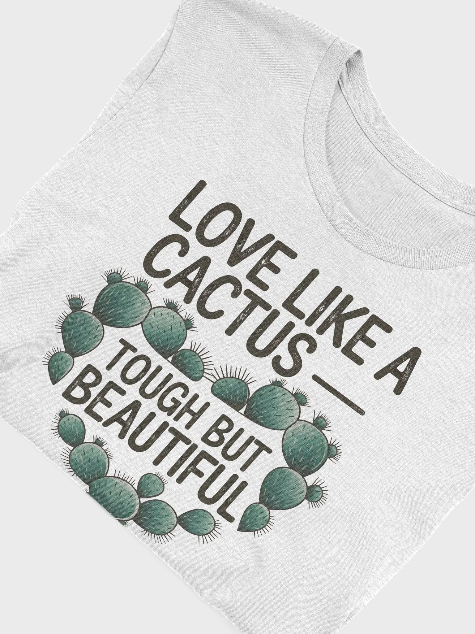 "LOVE LIKE A CACTUS - TOUGH BUT BEAUTIFUL" t-shirt, Resilient love, Enduring love, Stylish cactus theme, Symbolic love, Tough but beautiful slogan, romantic gift, unique gift, valentine gift idea