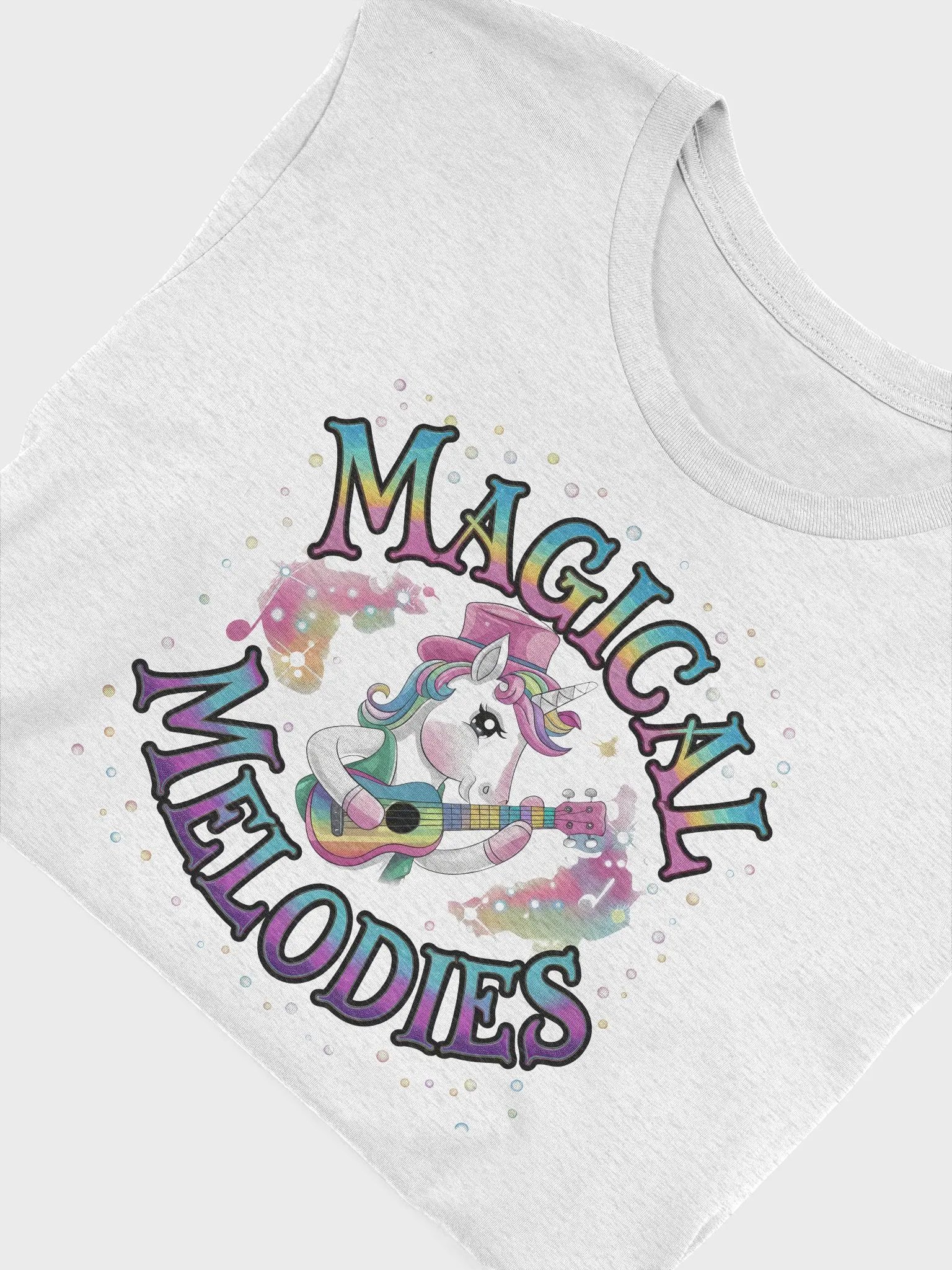 "Magical Melodies" t-shirt, unicorn guitar tee, fantasy creature t-shirt, fun and lively clothing, day-brightening apparel, unique music lover's tee, charming musical unicorn, unique gift