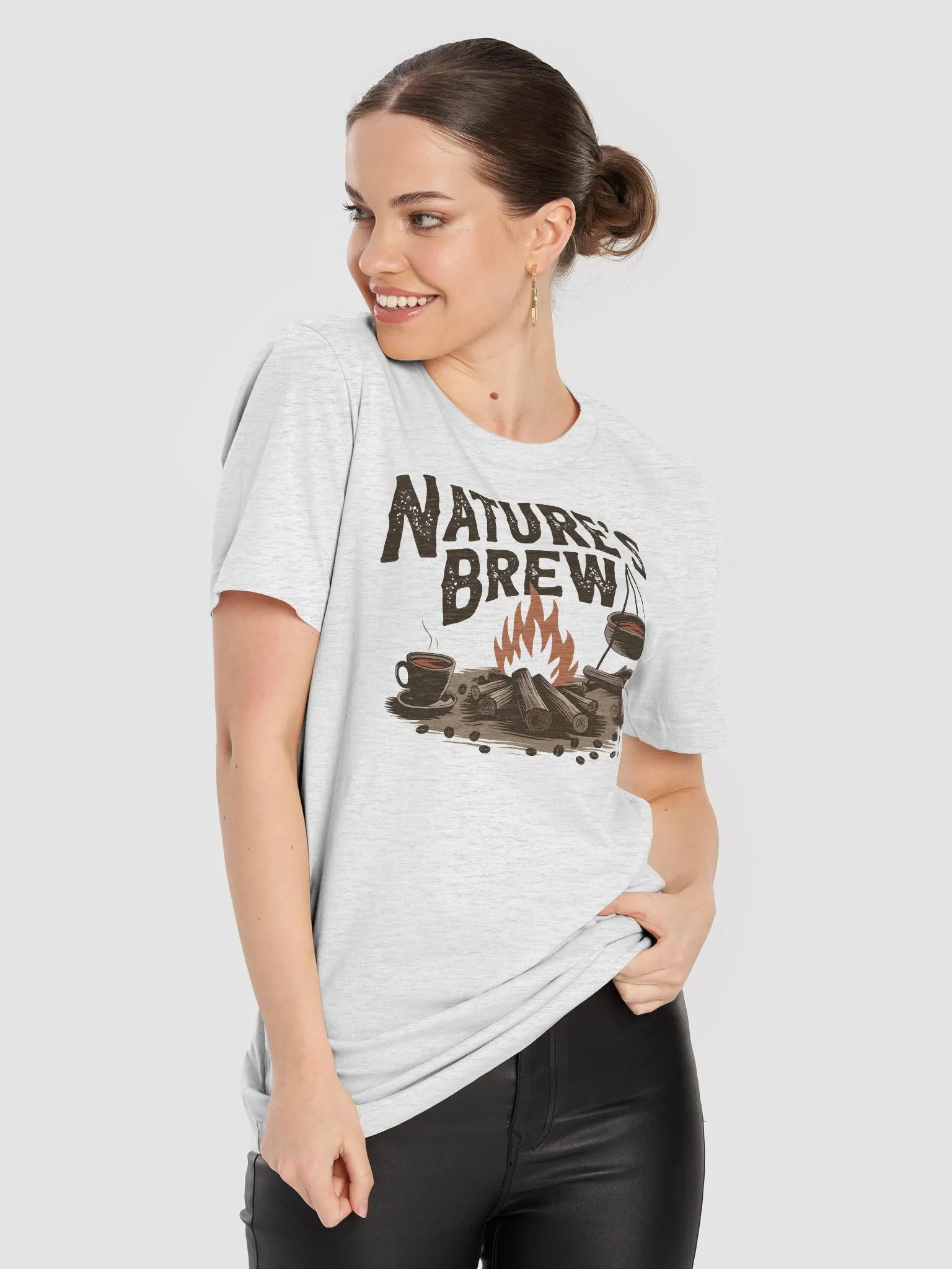 "Nature’s Brew" t-shirt, Nature-themed t-shirt, Campfire graphic tee, Outdoor adventure apparel, Coffee lovers, Cozy camping t-shirt, Hiking shirt for nature lover, unique gift