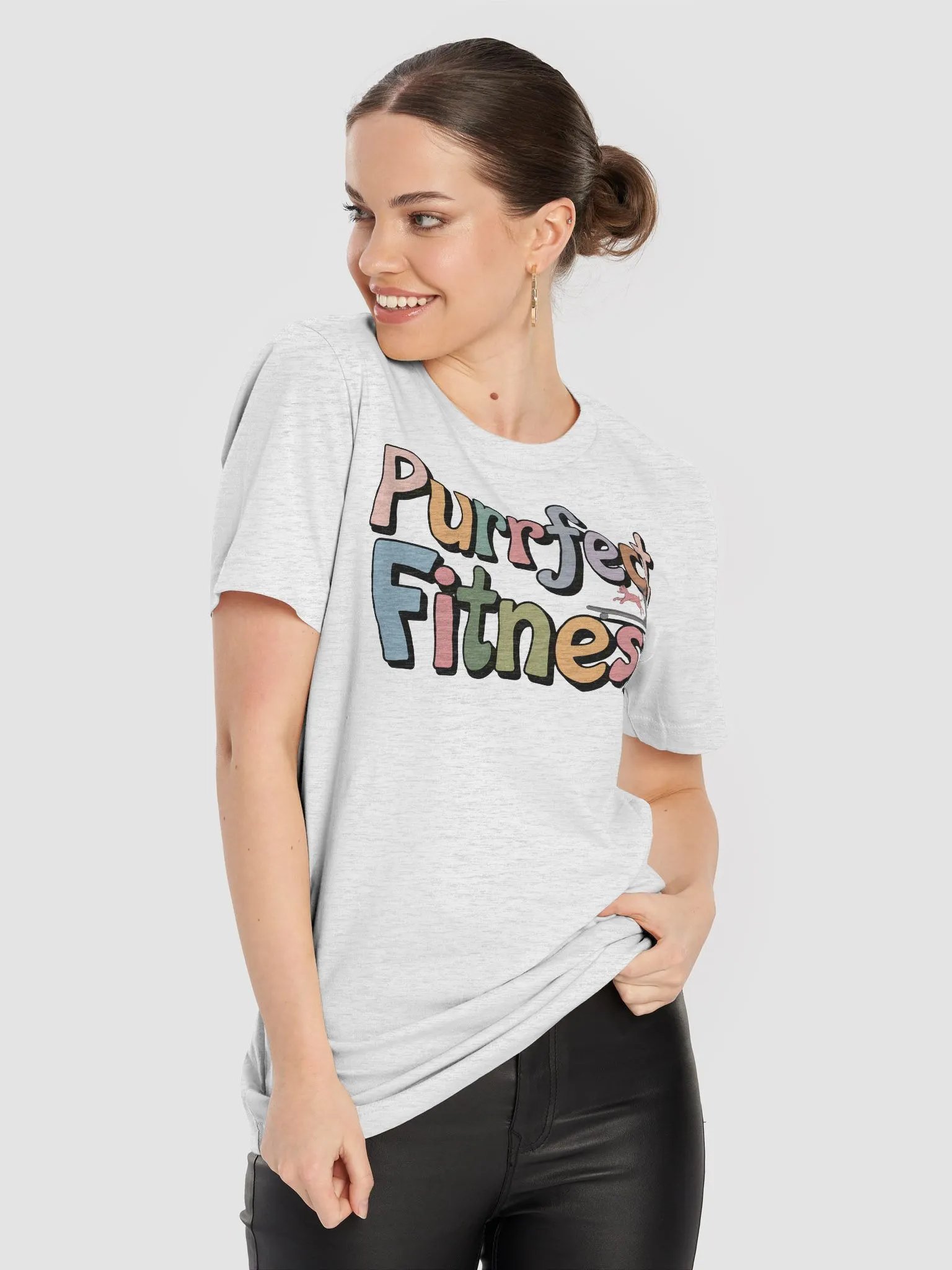 Get fit and feline good with our "Purrfect Fitness" t-shirt! This playful top features bold, multicolored lettering with an adorable cat working out on a treadmill. It’s sure to motivate you with humor during your next workout session or simply serve as a fun conversation starter.